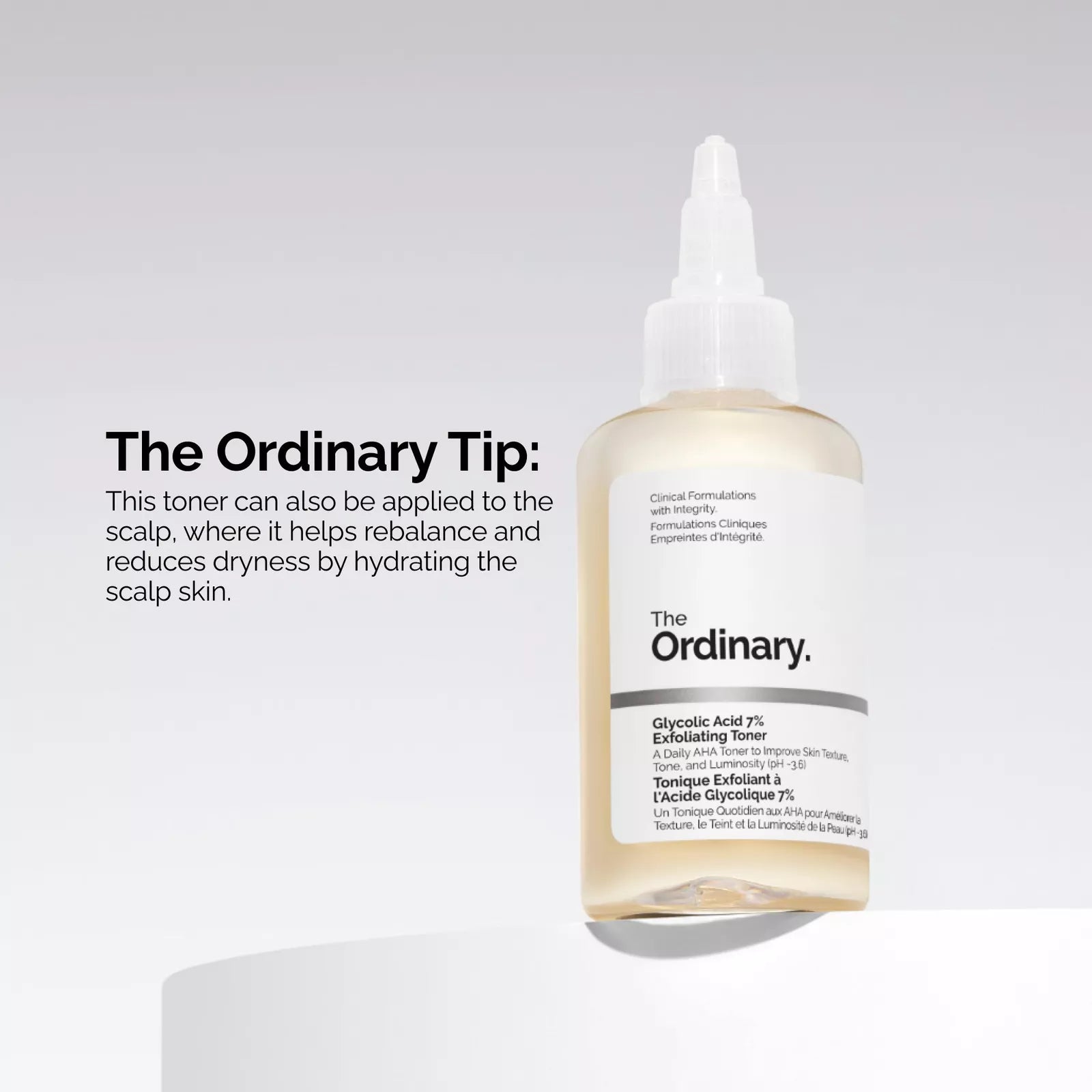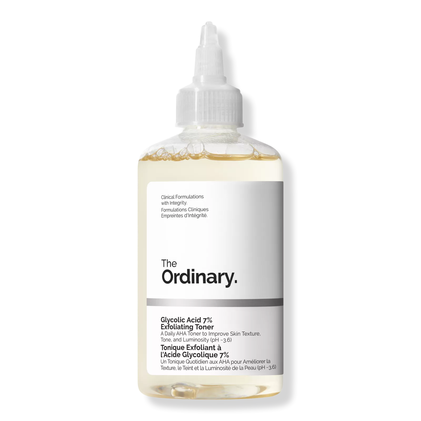 The Ordinary's Glycolic Acid 7% Exfoliating and Brightening Daily Toner offers mild exfoliation for improved skin radiance and visible clarity. The formula also improves the appearance of skin texture with continued use.